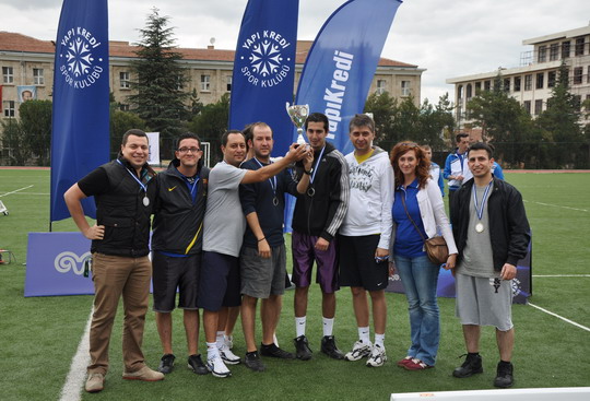 Diğer Aktiviteler Haber ArşiviYapı Kredi Bölge Spor Şenliği'nin 11'incisini Ankara’da büyük bir katılımla tamamladık...20 Eylül 2014 Cumartesi günü Ankara'da düzenlenen 11'inci Yapı Kredi Bölge Spor Şenliği, Gazi Üniversitesi Spor Yerleşkesi'nde yapıldı.Yapı Kredi Spor Kulübü’nün organize ettiği, 20 Eylül 2014 tarihinde gerçekleştirilen ve Ankara Bölgesi’ni ve çevre illeri kapsayan Bölge Spor Şenlikleri, 2'inci kez Gazi Üniversitesi Spor Tesisleri’nde, toplam 4 branşta oynanan spor karşılaşmaları ve çocuklara yönelik eğlenceli aktivitelerle tamamlandı Futbol, Basketbol, Voleybol ve Masa Tenisi müsabakalarının yapıldığı ve pek çok sporcunun mücadele ettiği Spor Şenlikleri, aile bireyleriyle birlikte 950 kişiye yakın Yapı Kredi çalışanı ve yakınlarının katılımıyla, 20 Eylül Cumartesi günü açılış töreniyle başladı. İç And. Böl. Per. Bölge Müd. Piri Murat Sehman, Kuzey Anadolu Böl.Per. Ban. Müd. Tuncay Karaoğlu, Çankaya Saha Müd. Aylin Tunay Koç, Kızılay Saha Müd. Murat Özdemir, Ulus Saha Müd. Hakkı Tolga Özel, Bolu Saha Müd. Serhat Aydoğmuş’un konuşmalarıyla başlayan etkinliklere, Şubelerin geçiş seromonilerinin ardından, futbol ve masa tenisi karşılaşmalarıyla devam edildi. Aynı gün öğleden sonra ise basketbol ve voleybol karşılaşmalarına devam edildi. Toplam 4 branşta 75 karşılaşmanın oynandığı müsabakalar sonrasında dereceye giren takım ve sporculara kupa ve madalyaları verildi. Eş zamanlı olarak, futbol sahası ve civarında çocuklar ve büyükler için oyun parkları kuruldu. Müsabakalar esnasında ve gün içinde, katılımcılarımıza ve misafirlerine çeşitli yiyecek, içecek ve tatlı ikramları da gerçekleştirildi. “Kurukahveci Mehmet Efendi”, “Redbull” ve “Nuh’un Ankara Makarnası” firmalarına, katılımcılarımıza sundukları ikramlardan dolayı teşekkürlerimizi iletiyoruz. Devam eden Spor Şenlikleri'nde gerçekleştirilen müsabakalar sonucunda, tüm branşlarda dereceye giren takım ve bireysel sıralamalar aşağıdaki şekilde oluştu: