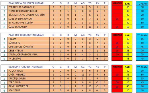 2. Tur 3. Hafta müsabaka programı Puan tablosu